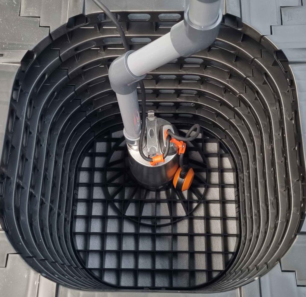 In tegenstelling tot een standaard pompput heeft dit systeem een extra groot volume. In combinatie met een vrij opgestelde dompelpomp zijn er minder inschakelmomenten. De vlotter van de dompelpomp heeft een volledig bereik. Hierdoor is de pomp duurzamer in gebruik.