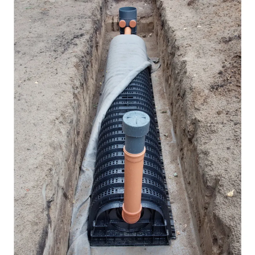Installatie is eenvoudig en dat is ook de kracht van de infiltratietunnel. Je graaft een gleuf of groter gat wanneer je meerdere tunnels naast elkaar wilt plaatsen. Deze voorzie je van geotextiel waar bovenop je de infiltratietunnels plaatst.Zorg ervoor dat je de uiteinde van de tunnels voorziet van eindkappen. Vervolgens omwikkel je de tunnel volledig waardoor deze compleet voorzien is van geotextiel.
