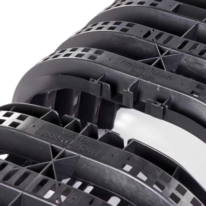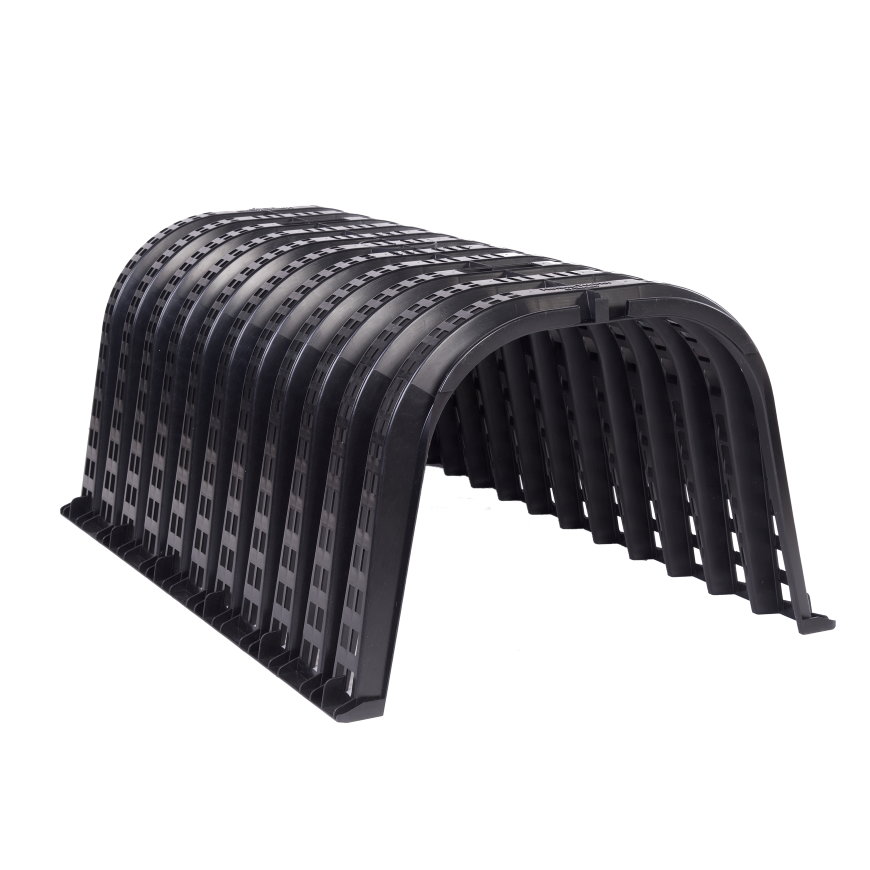 De tunnels zijn eenvoudig aan elkaar te koppelen. Hierdoor kun je volledig zelf het benodigd volume bepalen. De tunnels hebben een maximale belasting van 7,5 ton bij een ingraafdiepte van tenminste 1 meter.