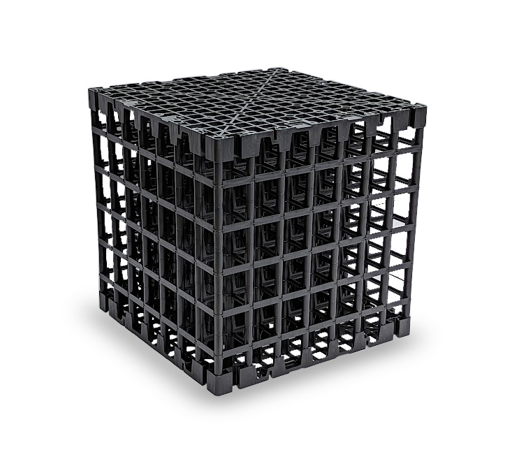 De Infiltratiekrat 150 liter zwaar kaal - 60 x 60 x 40 cm is een vernieuwd model met een groter beschikbaar volume en meer drukpunten voor een zware belasting. De krat heeft een compacte vormgeving (60 x 60 x 40 cm) en is te gebruiken voor het modulair opbouwen van een infiltratiekrat.