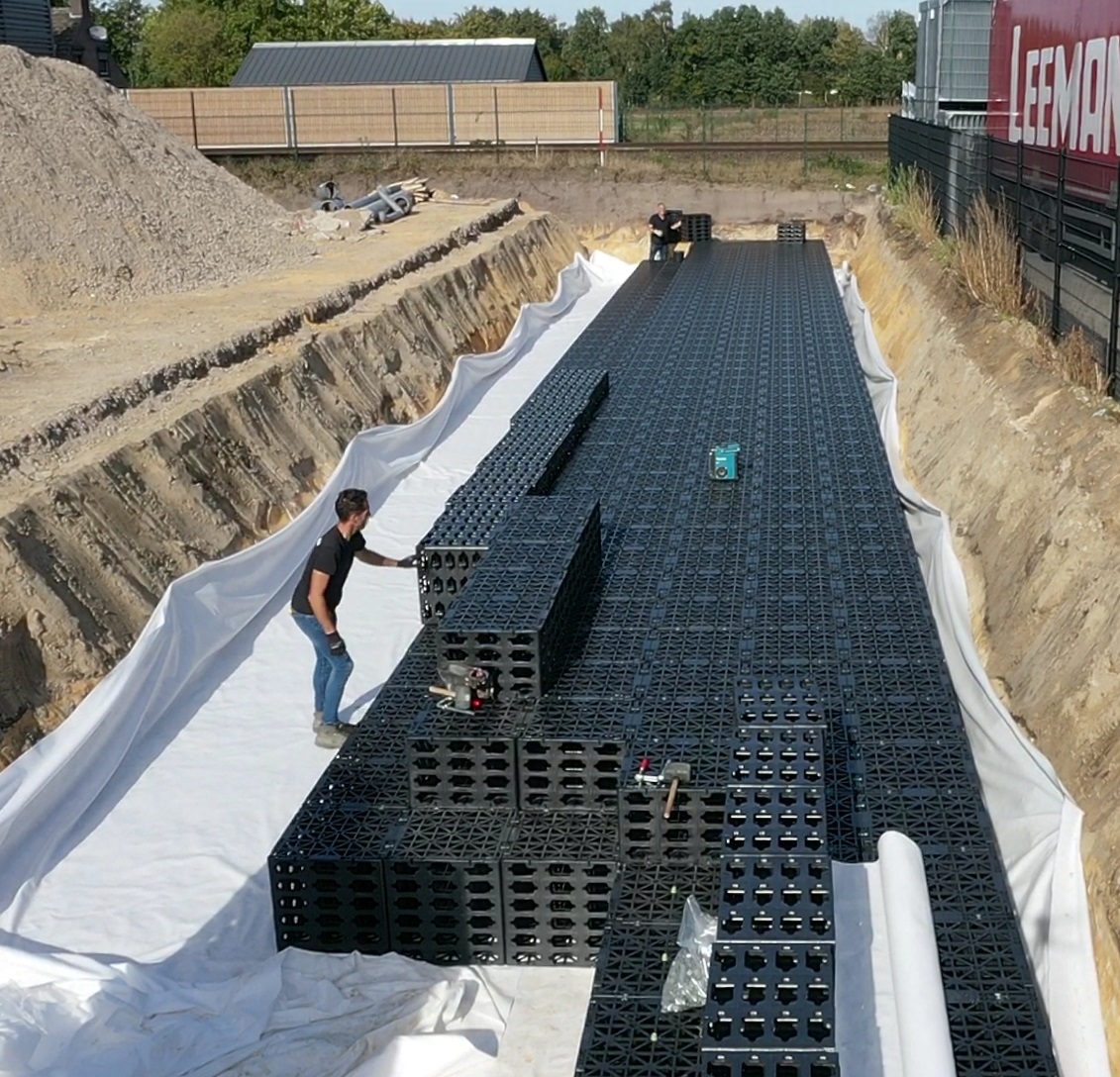 De innovatieve ITK-infiltratiekrat is dankzij de constructie geschikt voor zware belasting met als voordeel dat de krat minder diep ingegraven hoeft te worden. Dit scheelt een hoop graafwerk en maakt de krat ook geschikt voor minder makkelijk uit te graven plekken in de tuin.