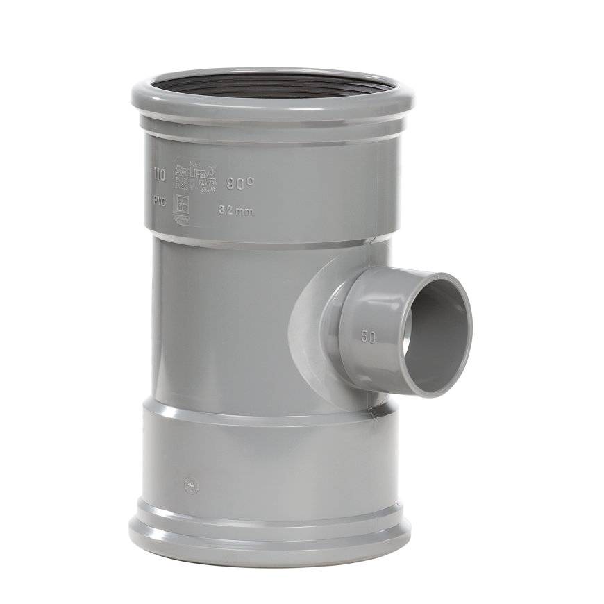 PVC verloop T-stuk 88 graden 125 x 50 mm SN4 (2 x manchet/ 1 x lijm)
